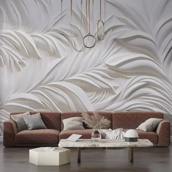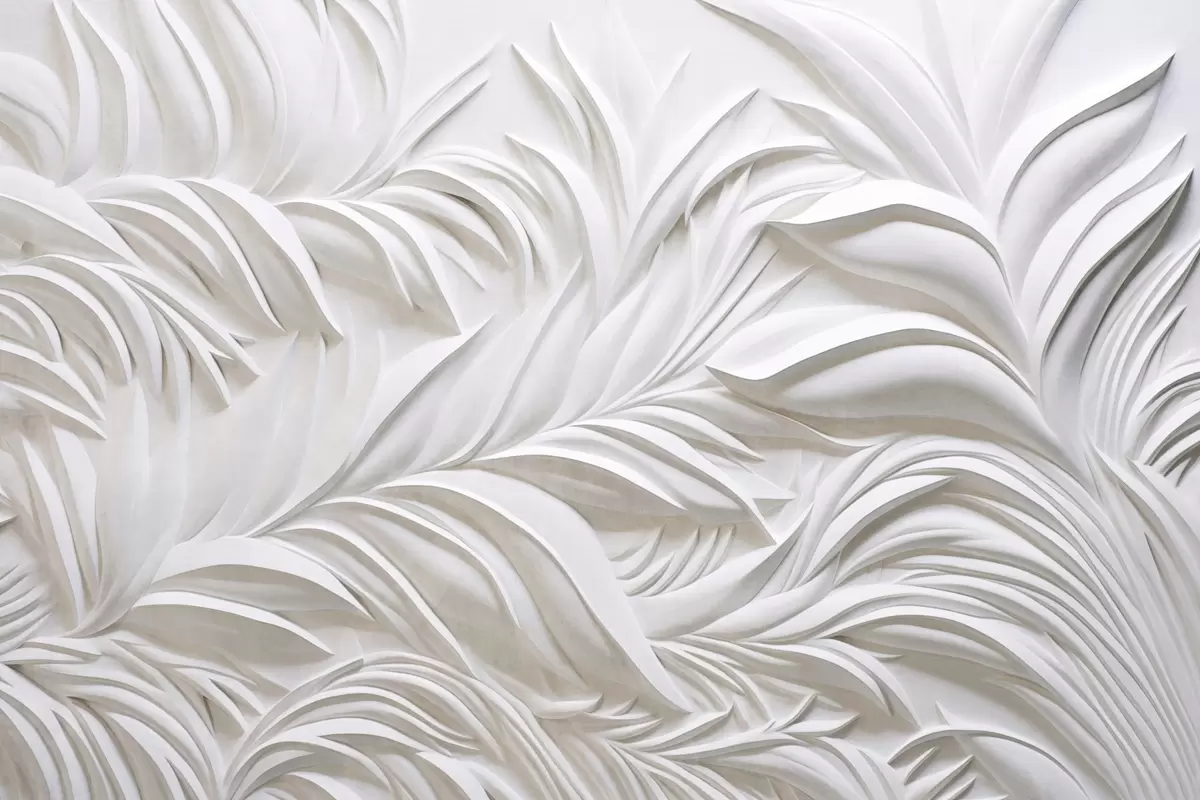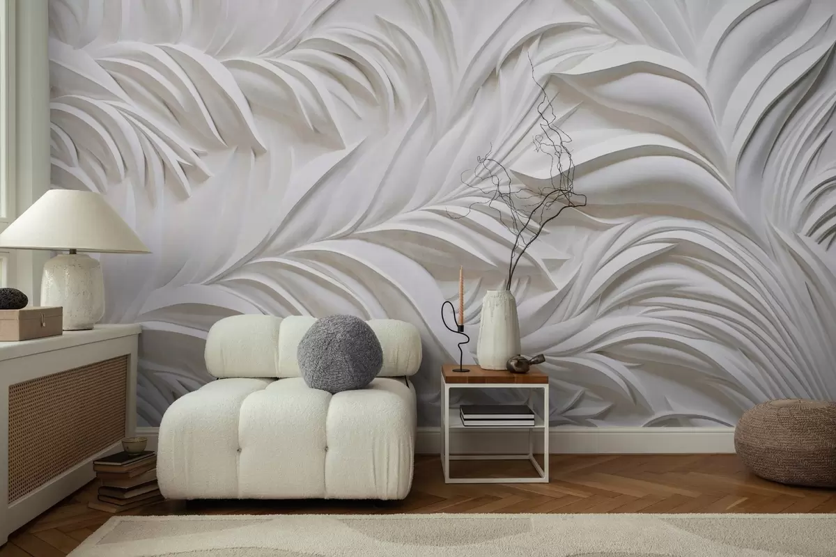 Фототапет Абстрактни текстурирани бели листа и флорални елементи, минималистична естетика Nr w09378