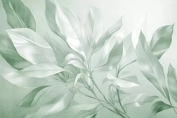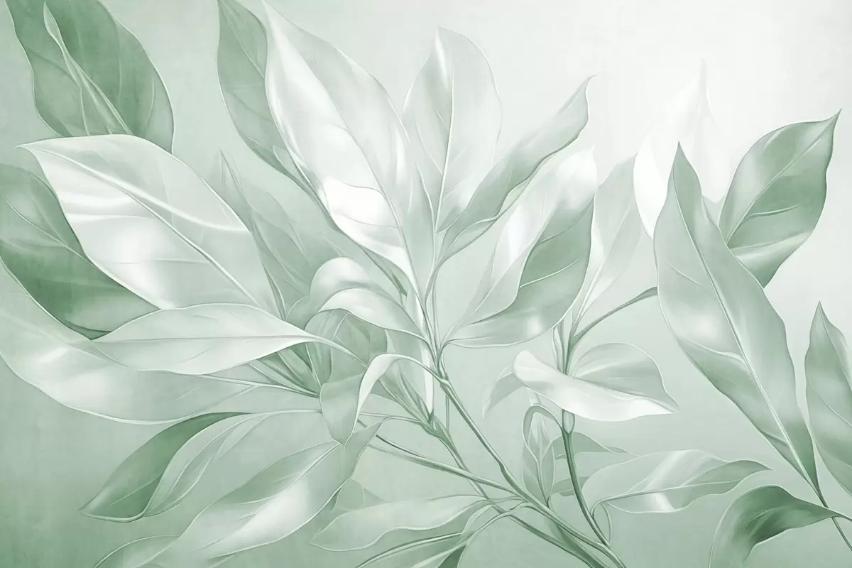 Фототапет Листа на магнолия с бели и зелени тонове, меко осветление, елегантна композиция, детайлни жилки на листата, артистични движения на четката Nr w09385v1