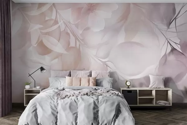 Фототапет Цветя с приглушени бежови и кафяви цветове, листа и клони, меки пастелни цветове, ефект на акварелна текстура Nr w09397