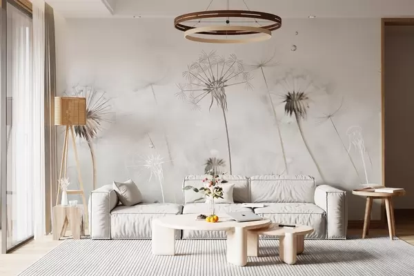 Фототапет Лютици с капки вода, бял фон, близък план, мека светлина, природа, ботанически, ефирен, деликатен, минималистичен Nr w09399