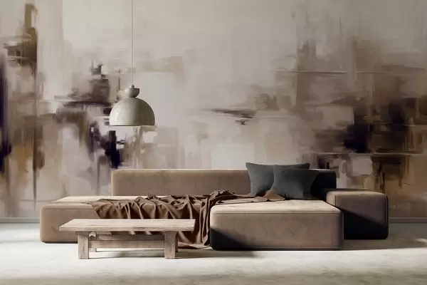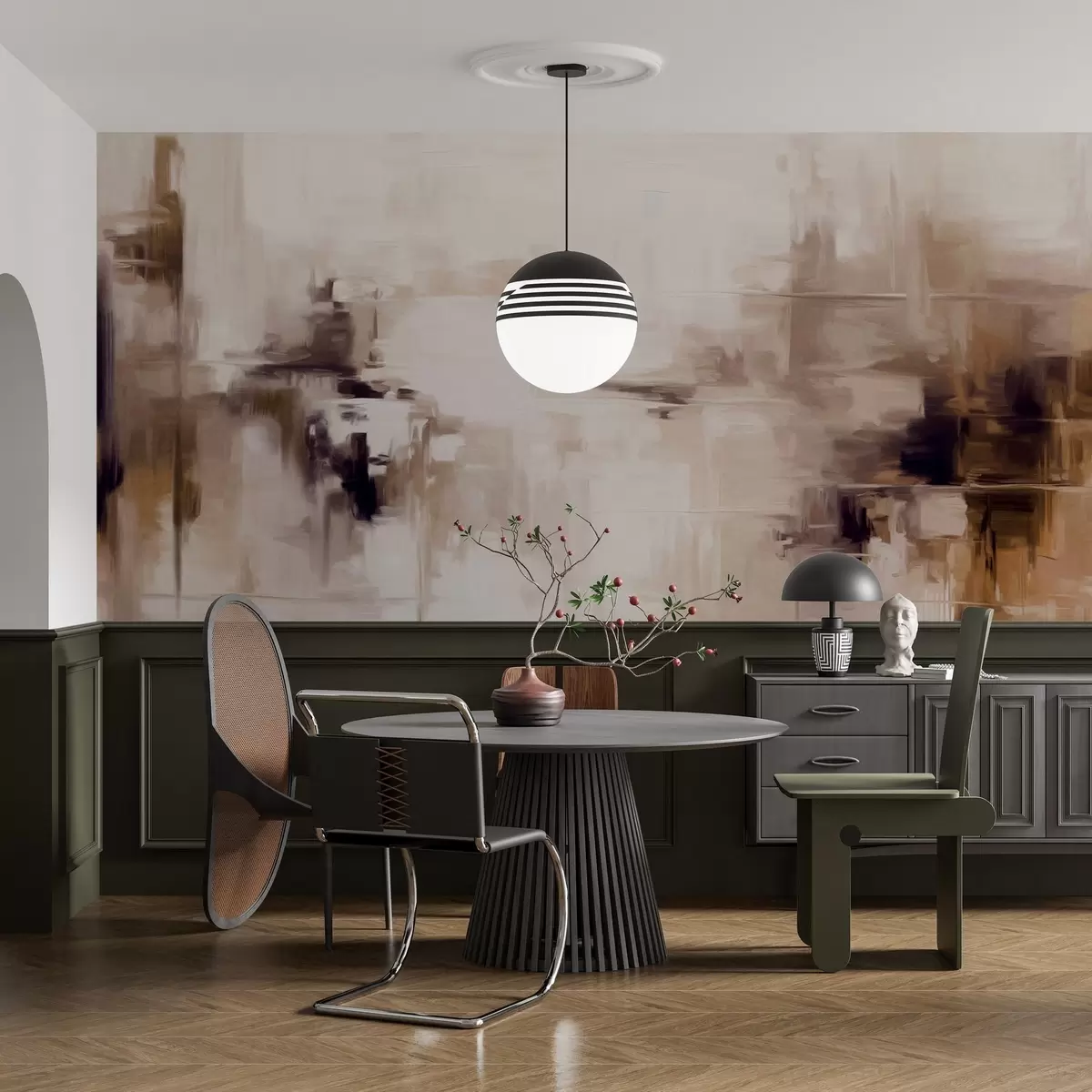 Фототапет Абстрактна текстурирана имитация на пейзажна живопис с кафяви и бели мазки, модерен стил Nr w09422v1