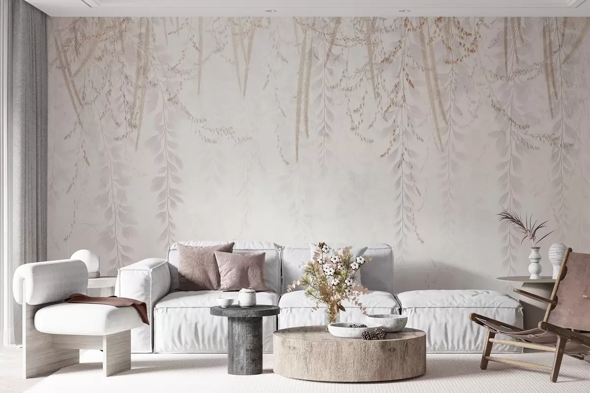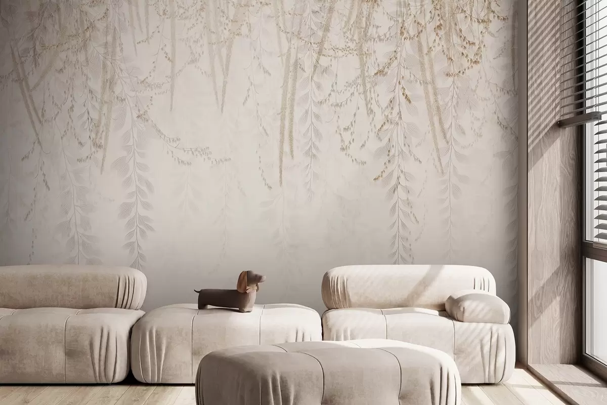 Фототапет Леки висящи листа и клони в бежови тонове Nr w09433