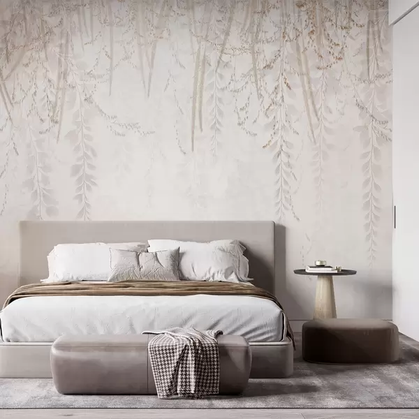 Фототапет Леки висящи листа и клони в бежови тонове Nr w09433