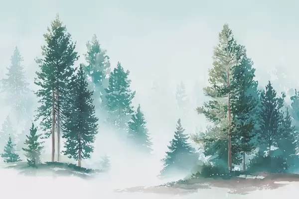 Фототапет Мъглива борова гора в акварелен стил Nr w09444