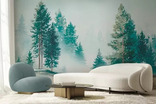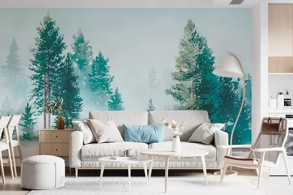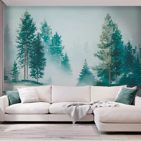 Фототапет Мъглива борова гора в акварелен стил Nr w09444