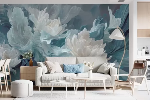 Фототапет Абстрактни цветя в сини и тюркоазени нюанси Nr w09452