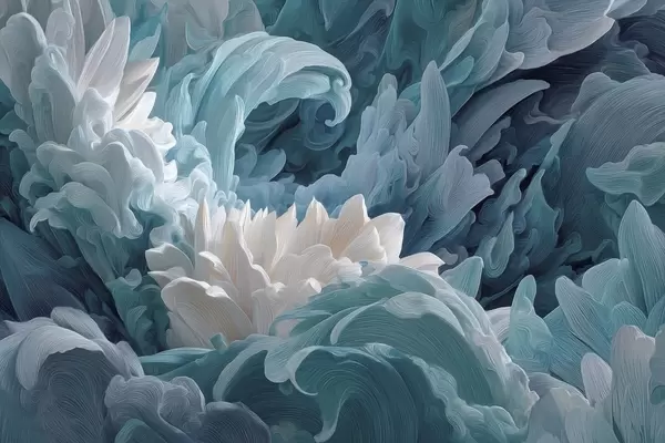 Фототапет Танц на листенца и океански вълни в сини нюанси Nr w09454