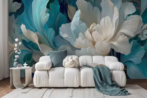 Фототапет Деликатна обемна божура в студена палитра Nr w09456