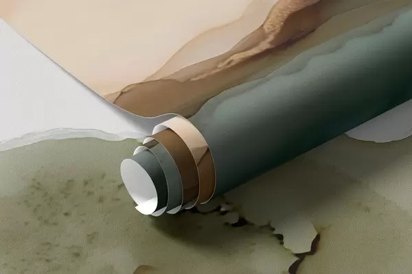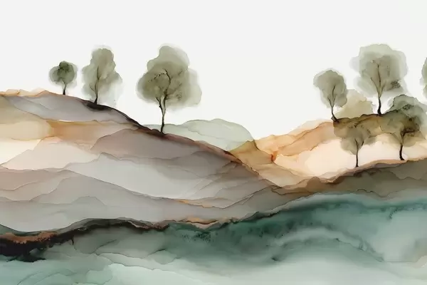 Фототапет Абстрактен пейзаж в стил алкохолно мастило — хълмове и дървета в пастелни тонове Nr w09457