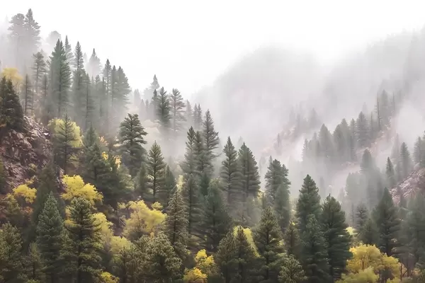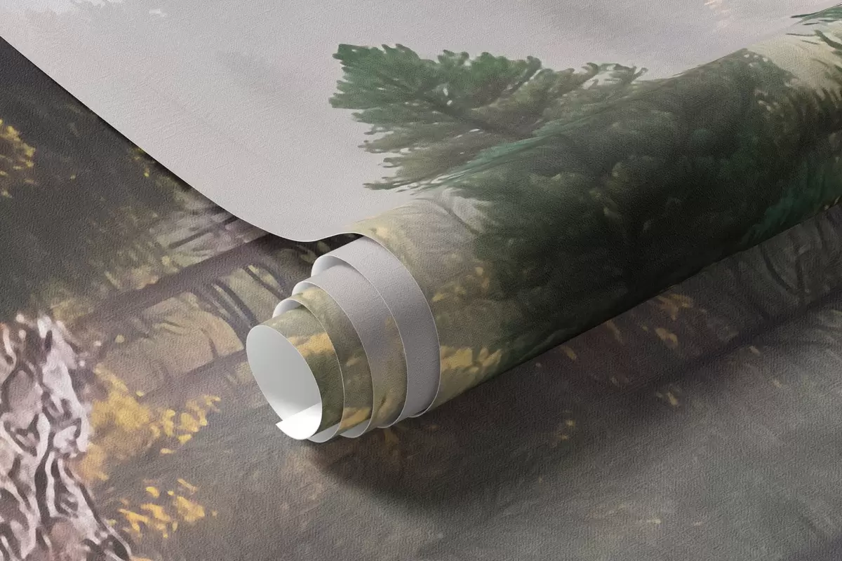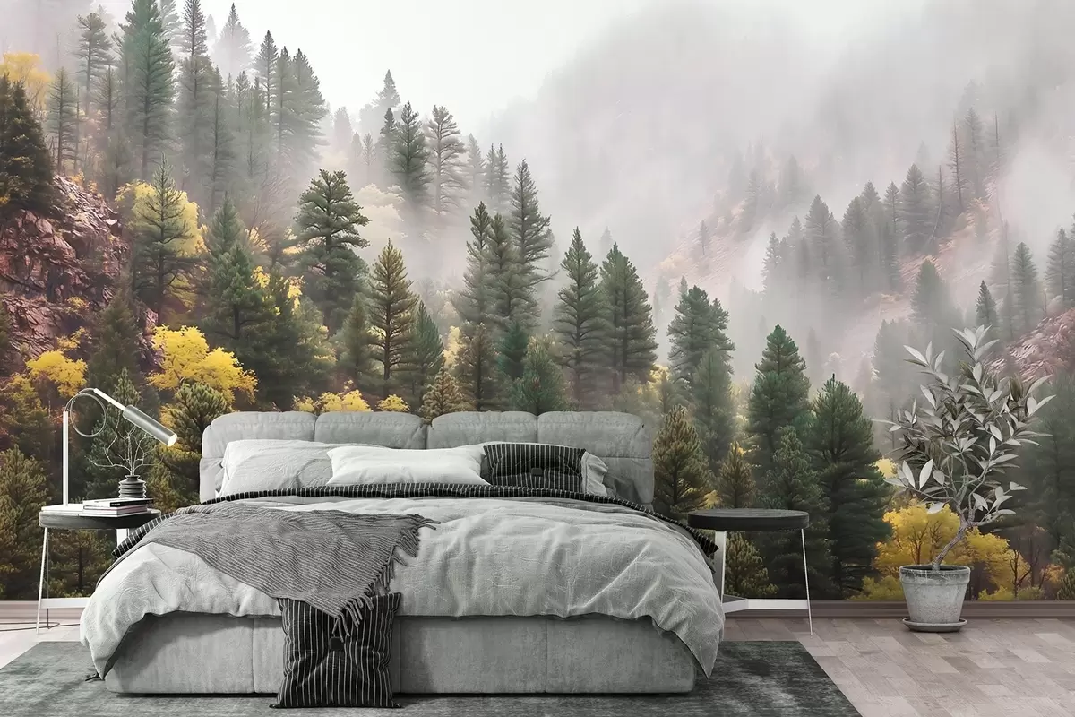 Фототапет Атмосферна мъглива борова гора в планините Nr w09463