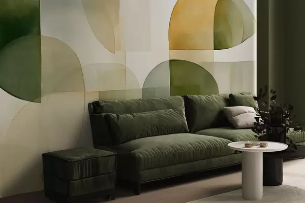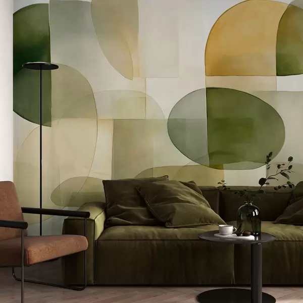 Фототапет Абстрактни текстурирани форми в нюанси на зелено и жълто, приглушени тонове, минималистична композиция, неутрален фон Nr w09467
