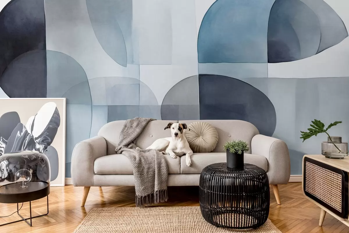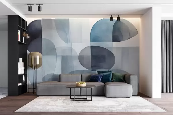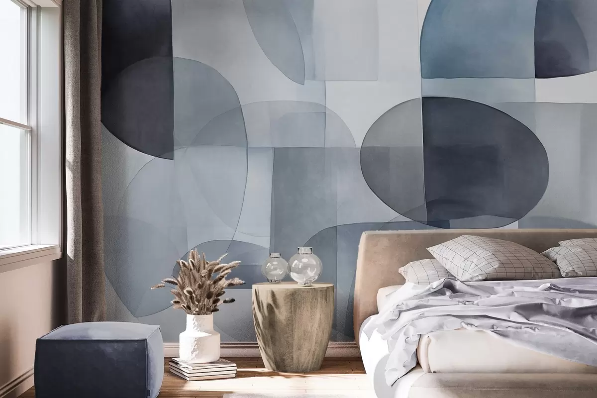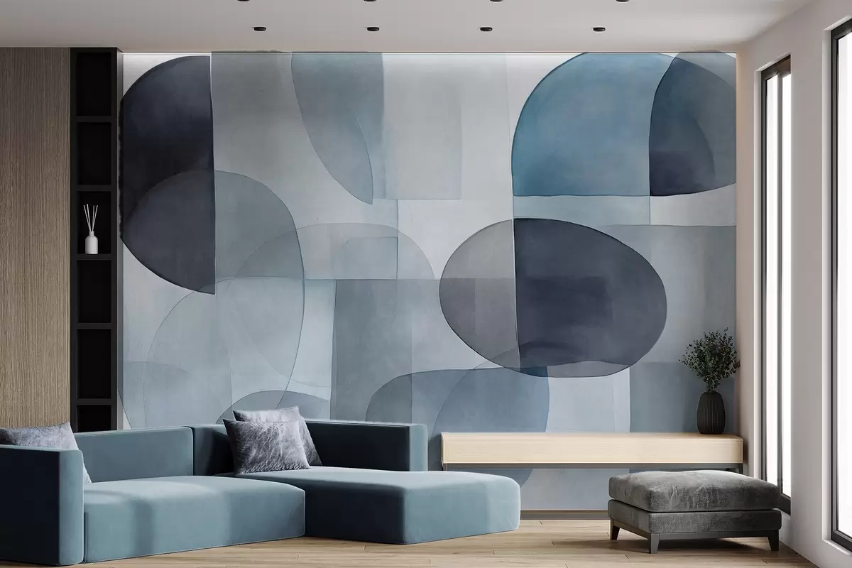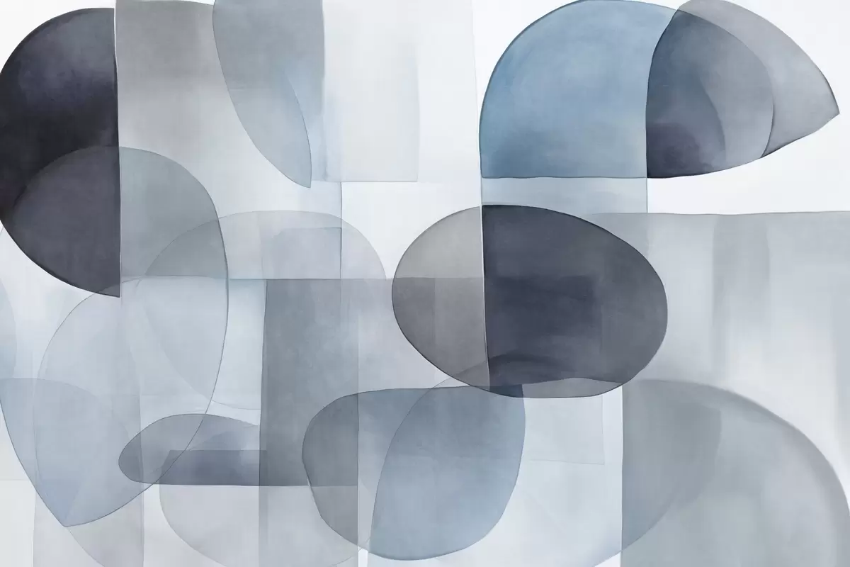 Фототапет Абстрактни текстурирани форми в нюанси на сиво и синьо, приглушени тонове, минималистична композиция, неутрален фон Nr w09467v1