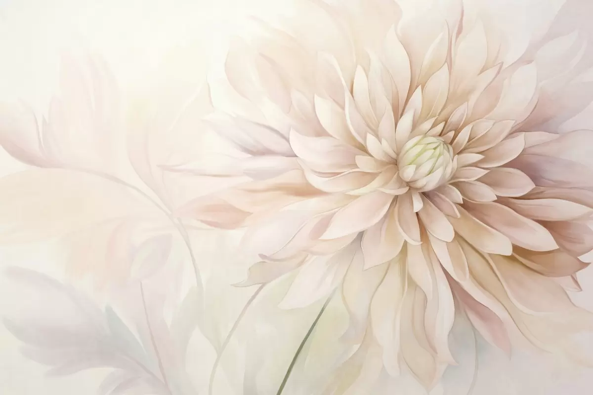 Фототапет Светлорозово цвете от далия с много листенца, мек пастелен фон с нотки на зелено и бежово Nr w09470