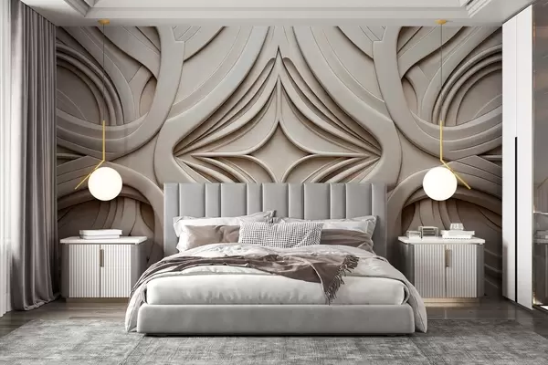 Фототапет Абстрактен симетричен текстуриран геометричен принт, светлобежов цвят, стил ар деко, сложни детайли Nr w09473