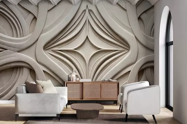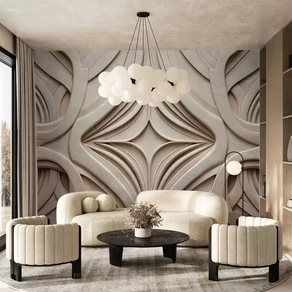 Фототапет Абстрактен симетричен текстуриран геометричен принт, светлобежов цвят, стил ар деко, сложни детайли Nr w09473