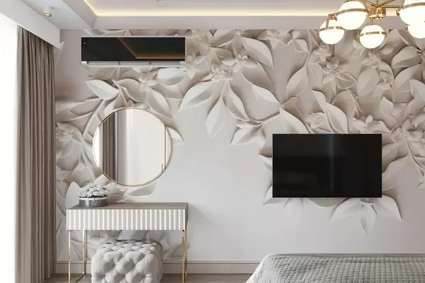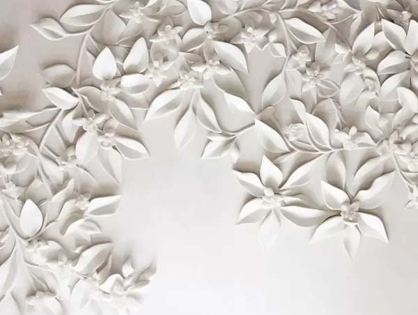 Фототапет Бели текстурирани цветя и листа, цветя аранжировка, елегантен дизайн, минималистичен стил, декоративно изкуство Nr w09479