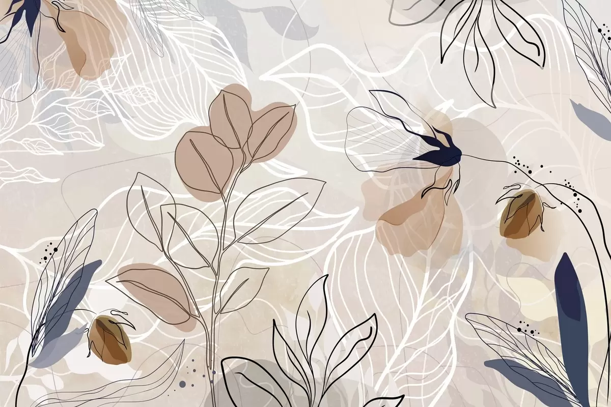Фототапет Бежов абстрактен фон с листа и цветя, модерни, минималистични, органични форми, ботанически принт Nr w09487