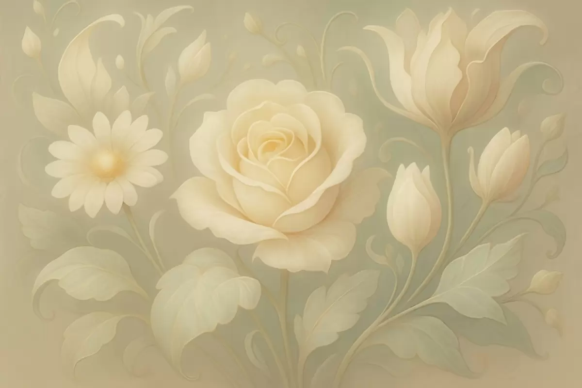 Фототапет Деликатна винтидж композиция с бежови рози на светлозелен фон Nr w09499