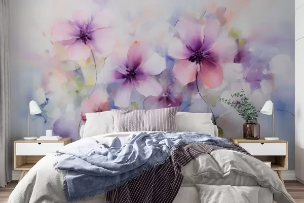 Фототапет Пролетни акварелни цветя в нюанси на розово и лилаво Nr w09502