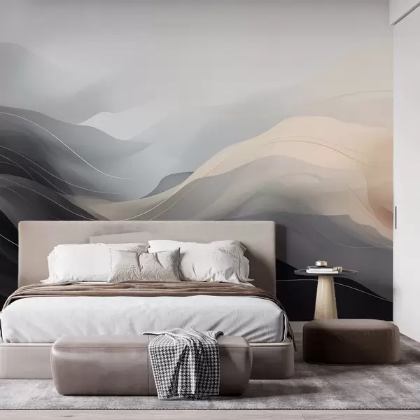 Фототапет Абстрактни мъгливи вълни в сиво-кремави тонове с жълти линии Nr w09504