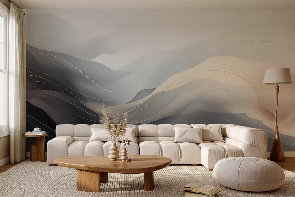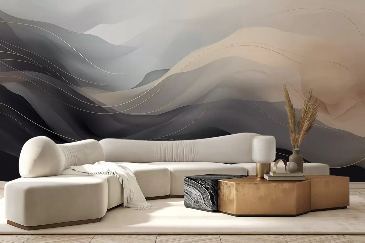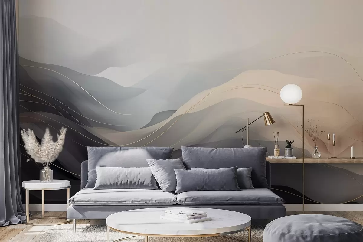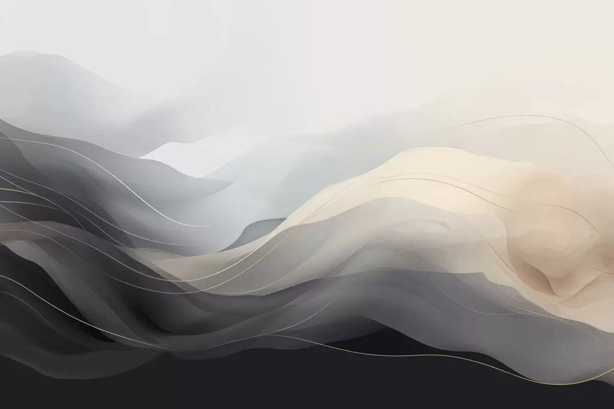 Фототапет Абстрактни мъгливи вълни в сиво-кремави тонове с жълти линии Nr w09504