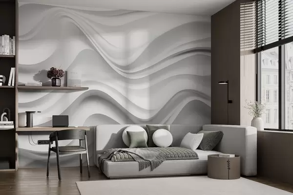 Фототапет Черно-бяла абстрактна 3D композиция с плавни вълни Nr w09506