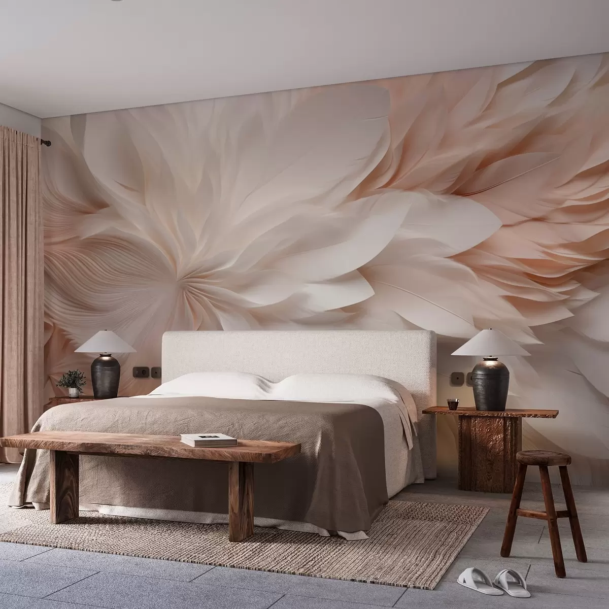 Фототапет Деликатни абстрактни пера в движение в бежови и кремави тонове Nr w09509