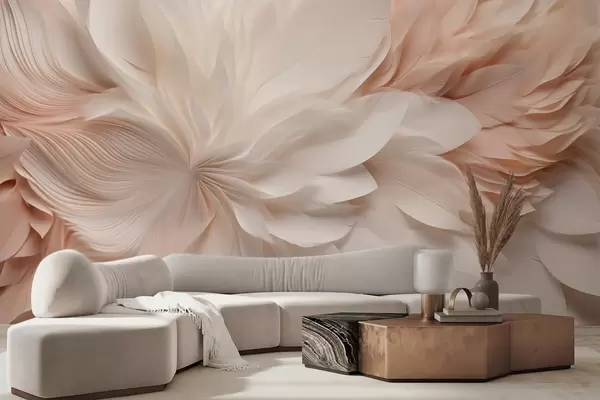 Фототапет Деликатни абстрактни пера в движение в бежови и кремави тонове Nr w09509