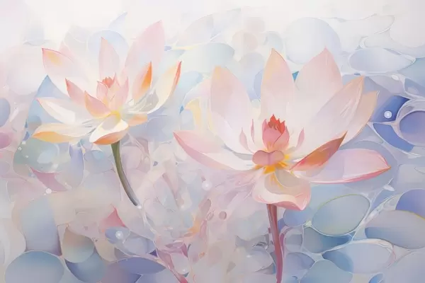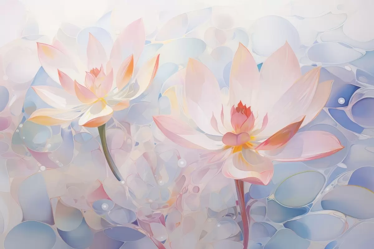 Фототапет Меки пастелни лотосови цветя в акварелен стил Nr w09512