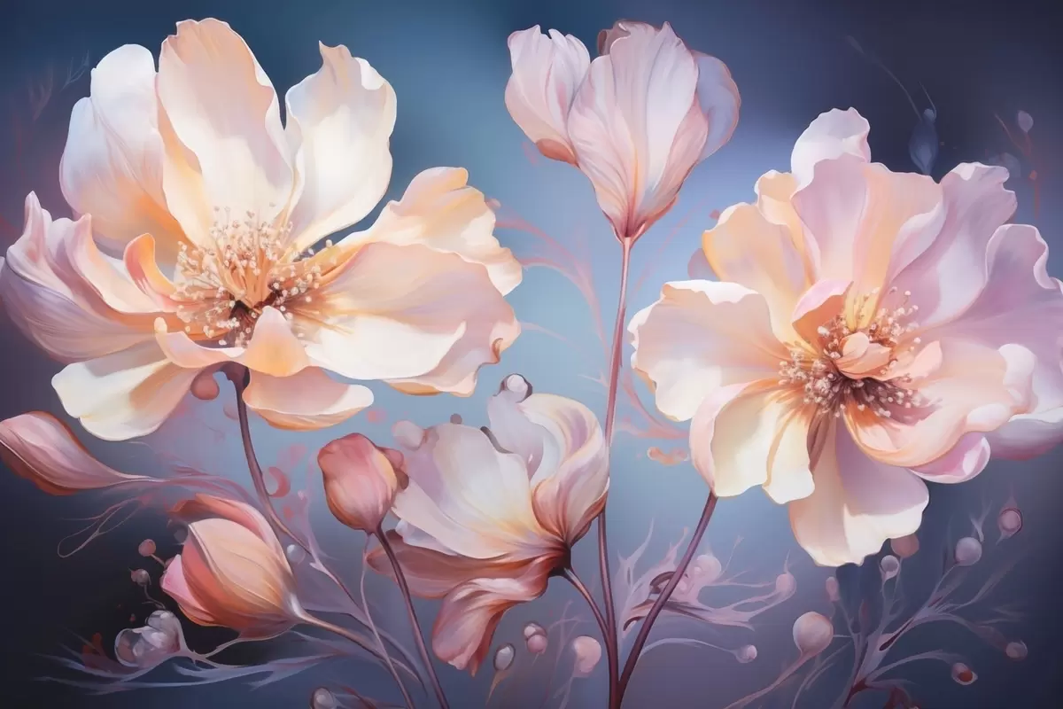 Фототапет Ефирни розово-кремави божури в акварелен стил на тъмно син фон Nr w09513