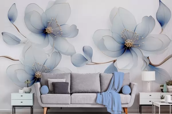 Фототапет Елегантна композиция от магнолиеви цветя в сини нюанси Nr w09520