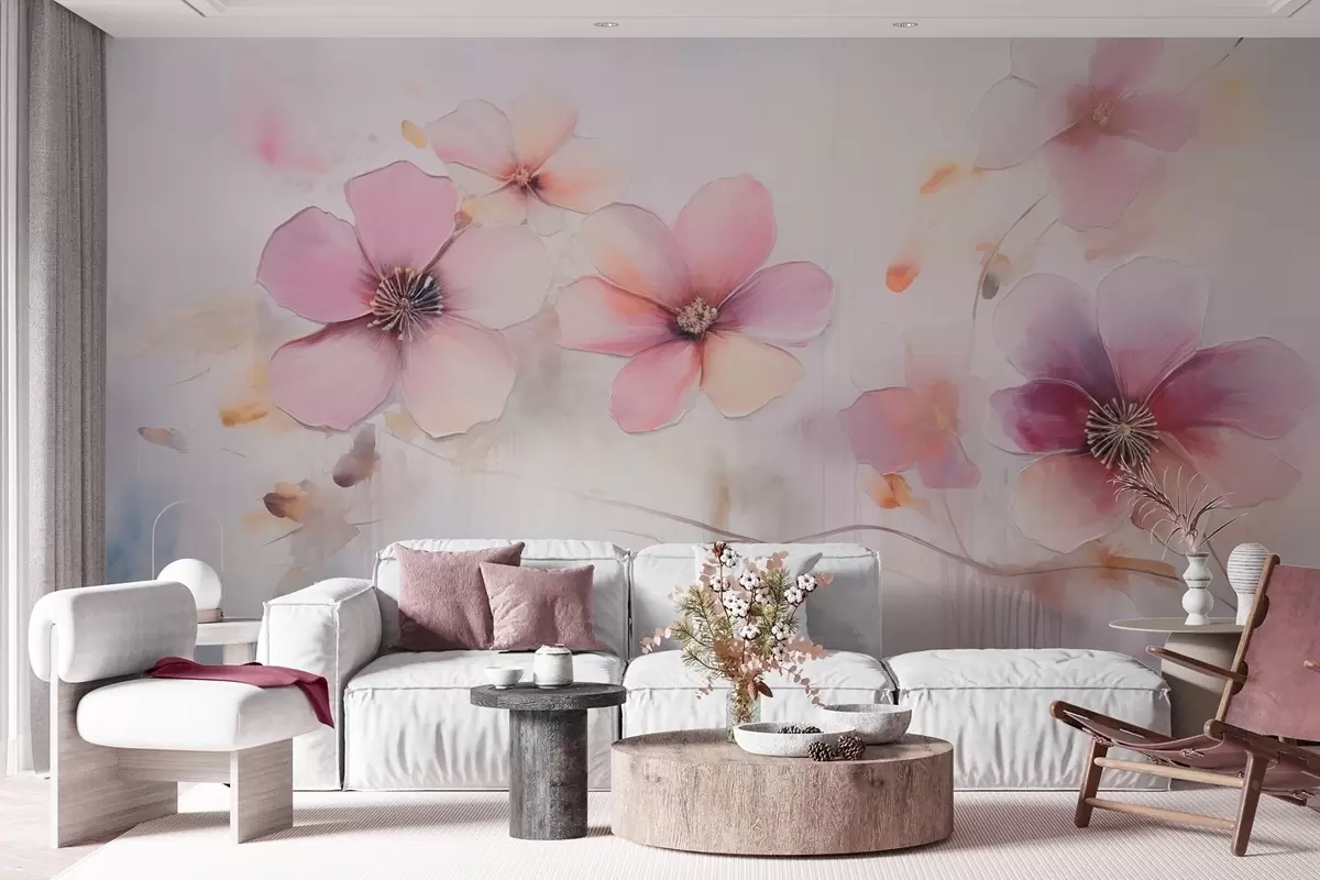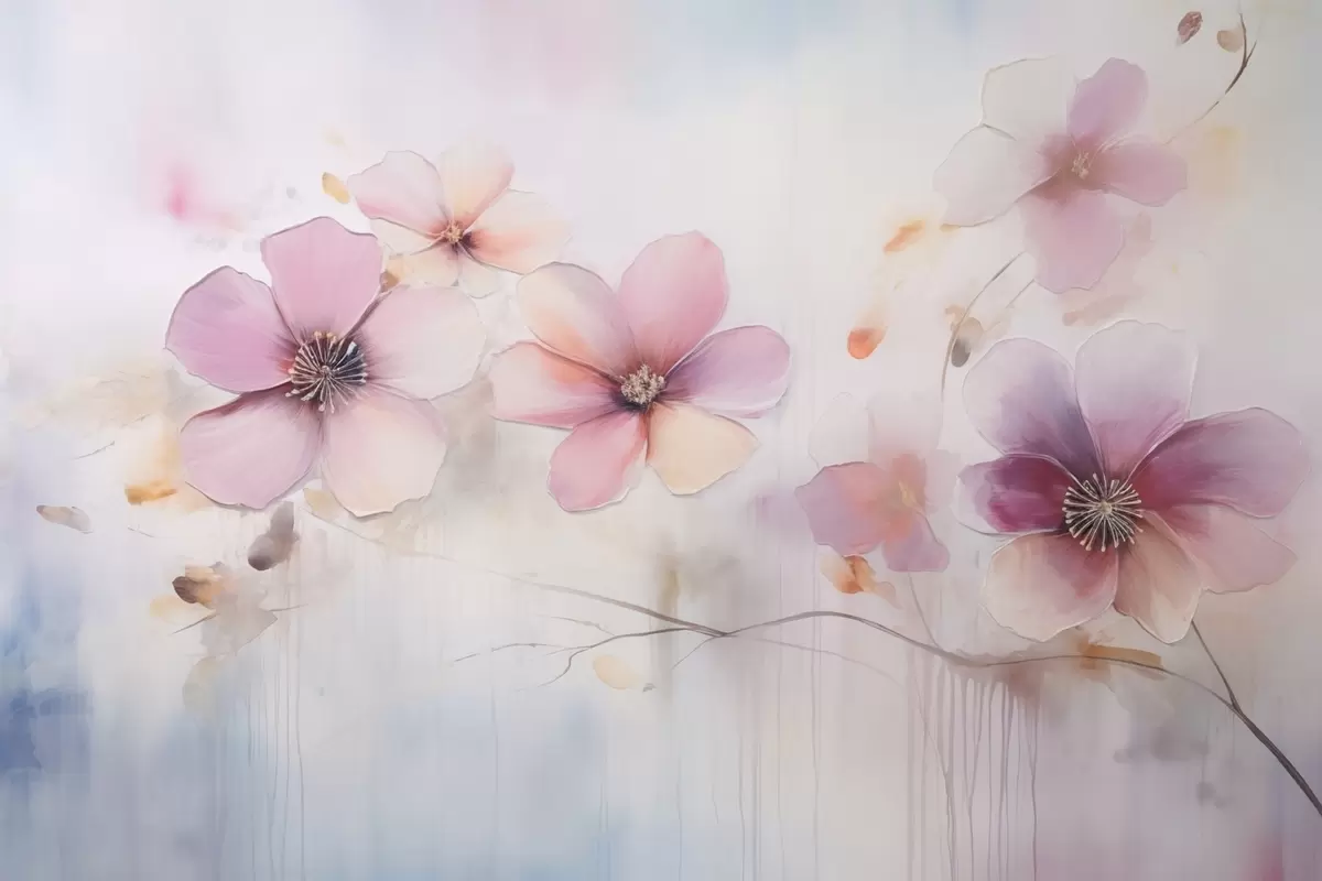 Фототапет Клонче с розови цветя в акварелен стил Nr w09522