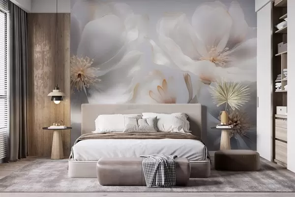 Фототапет Перлести цветя в бежово-сиви и млечно-кремави нюанси Nr w09527