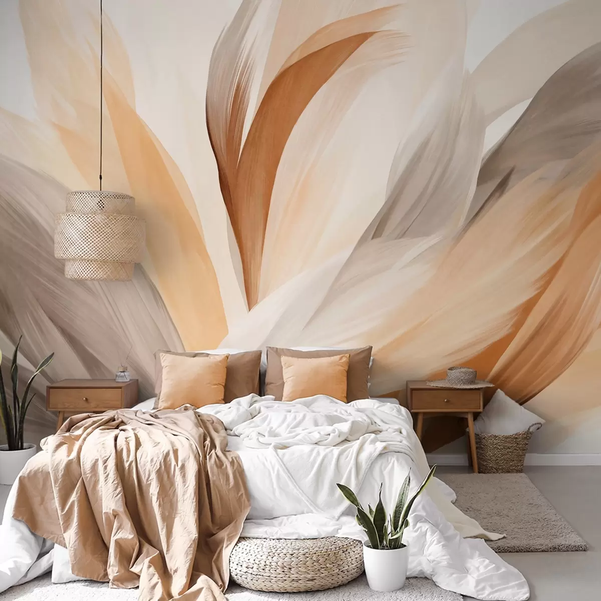 Фототапет Абстрактни текстурирани пера в кафяво, бяло и сиво и различни нюанси, наслагващи се върху бял фон Nr w09531