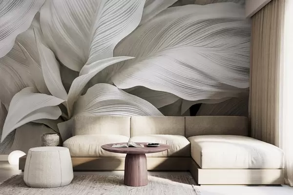 Фототапет Големи, текстурирани бели листа с изразени жилки, които се припокриват и създават дълбочина Nr w09536
