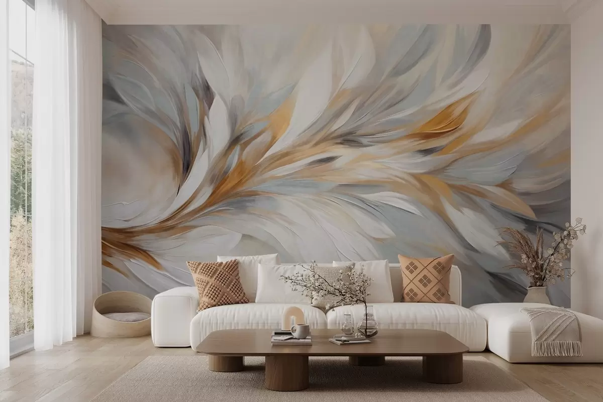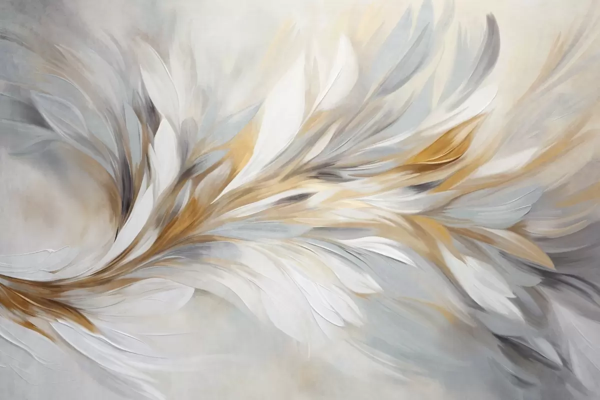 Фототапет Абстрактен стил на рисуване с бели, жълти и сиви текстурирани мазки върху мек, светъл фон Nr w09552