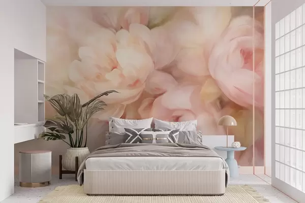 Фототапет Размити бледорозови и кремави божури с меки, живописни мазки, имитиращи текстурирана цветна аранжировка. Nr w09556