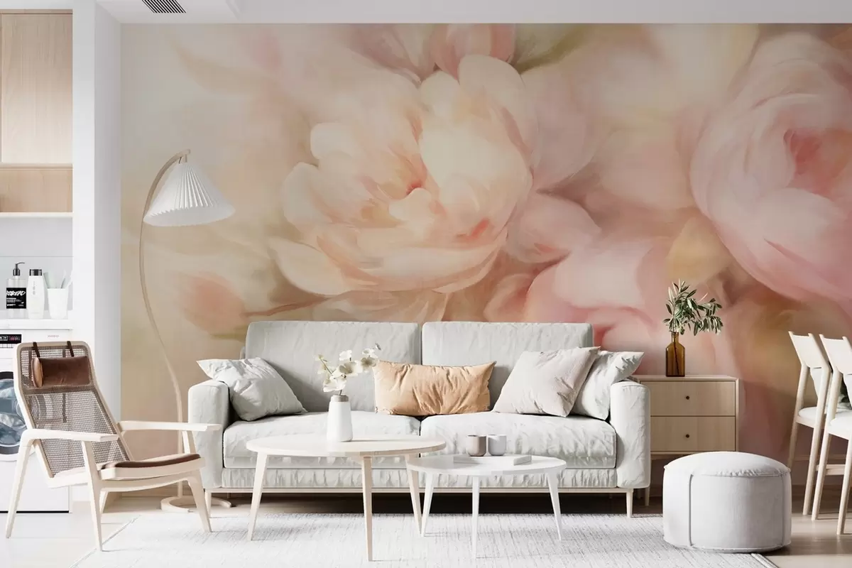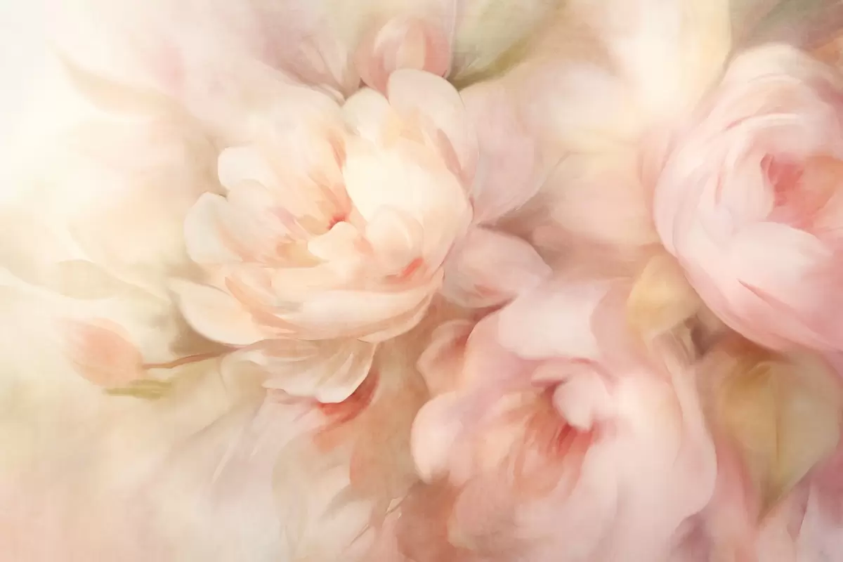 Фототапет Размити бледорозови и кремави божури с меки, живописни мазки, имитиращи текстурирана цветна аранжировка. Nr w09556