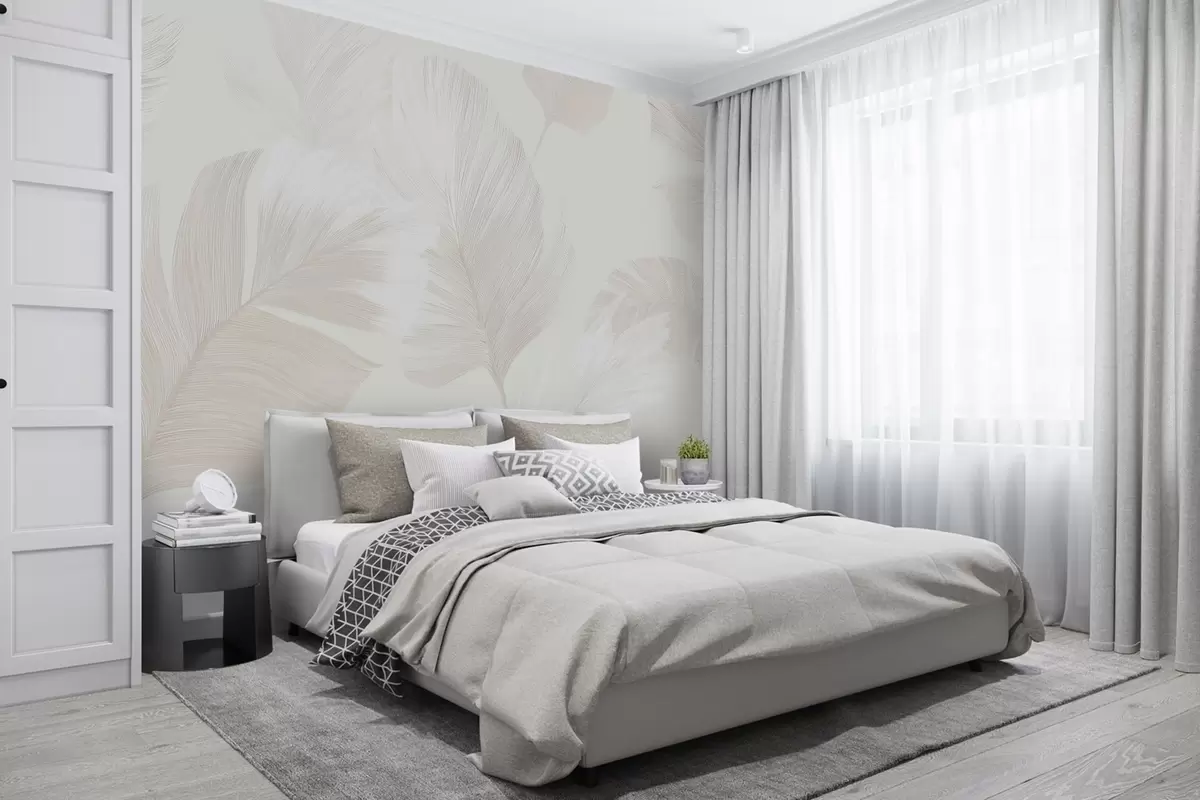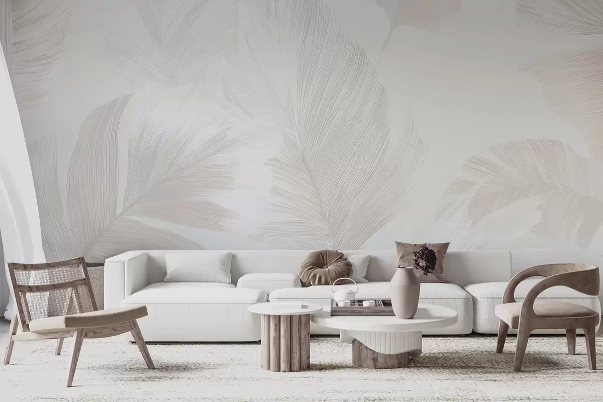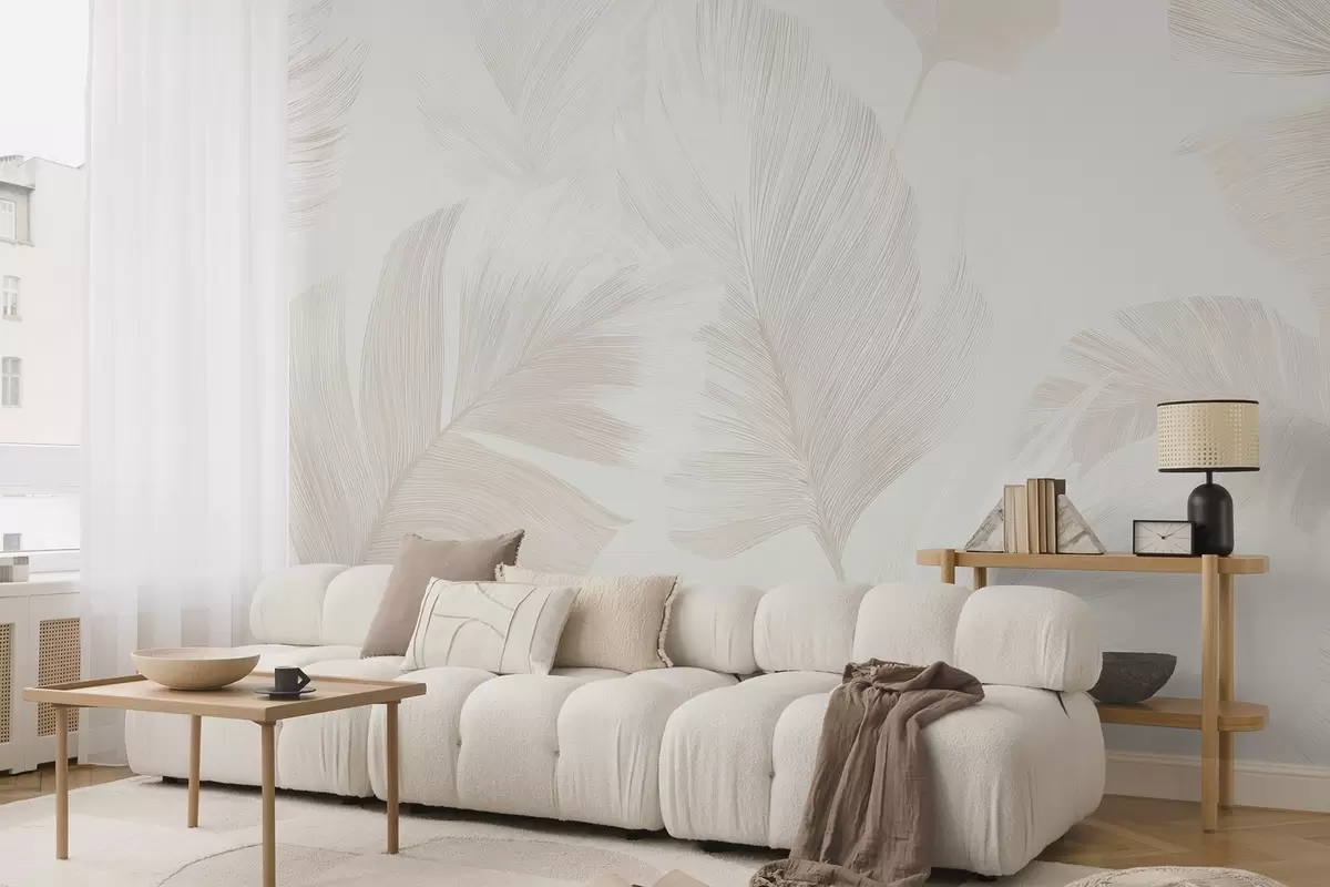 Фототапет Меки слонова кост пера в млечно бежови тонове Nr w09563