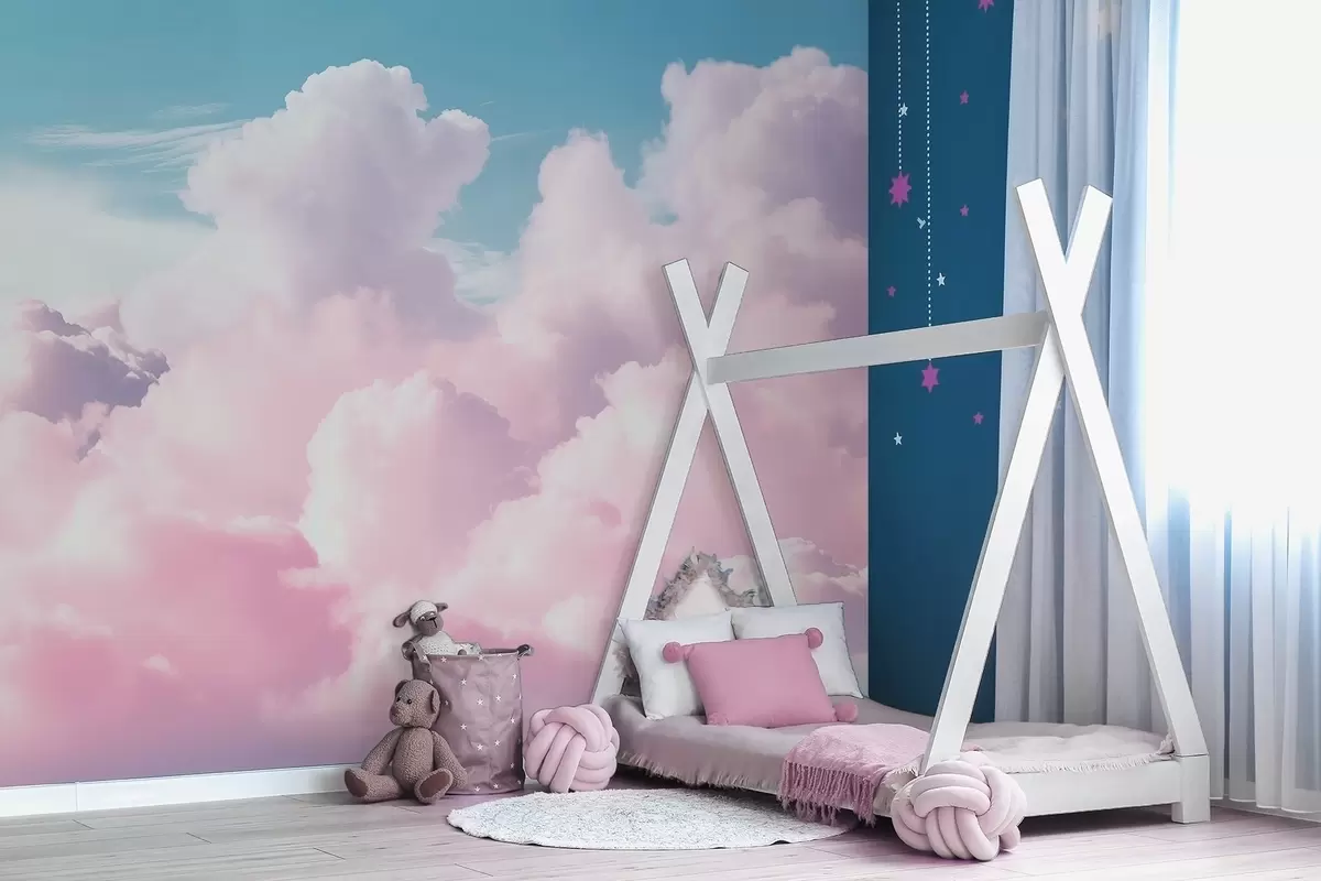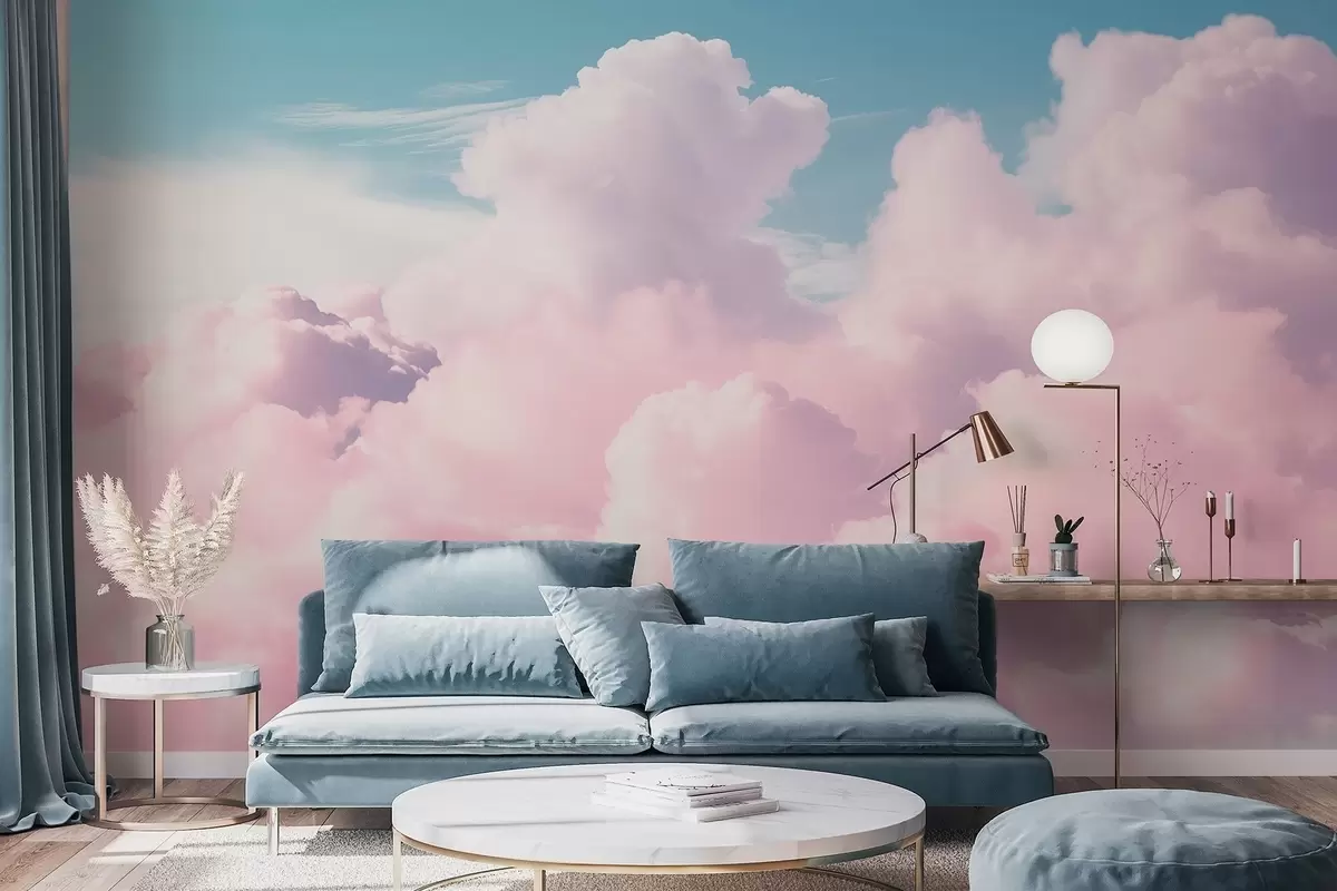 Фототапет Меки, ефирни розови облаци в синьото небе Nr w09569