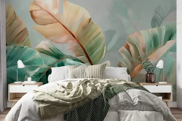 Фототапет Деликатни тропически бананови листа в пастелни жълто-зелени тонове Nr w09581