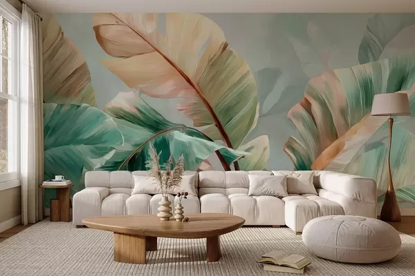 Фототапет Деликатни тропически бананови листа в пастелни жълто-зелени тонове Nr w09581