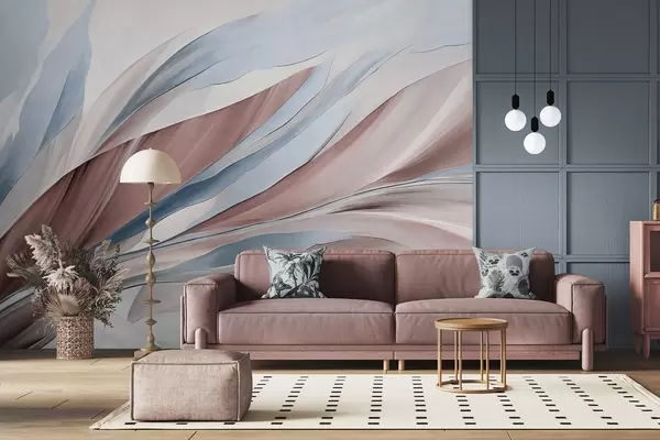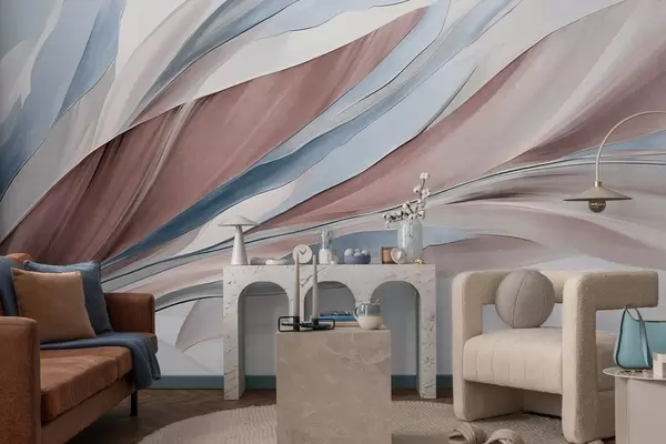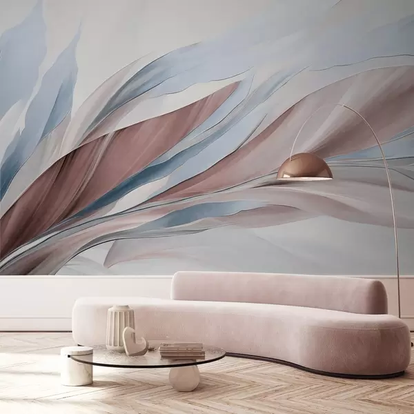 Фототапет Абстрактни вълни в синьо и кафяво, с тънки форми и линии, на бял фон, текстурирано изкуство Nr w09585v1