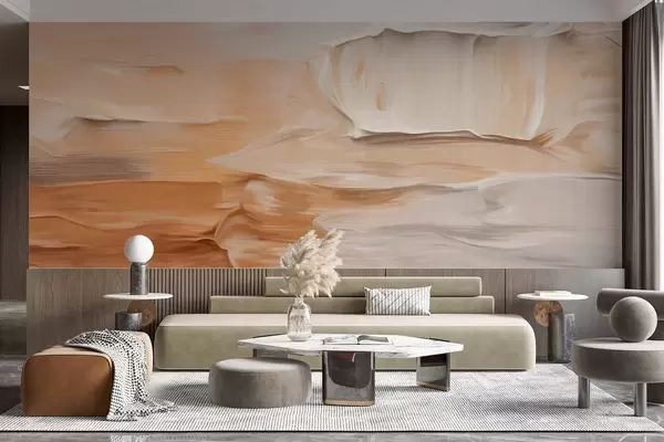 Фототапет Абстрактни текстурирани мазки, имитиращи топли земни тонове на бежово, кремаво и кафяво, модерно изкуство Nr w09588