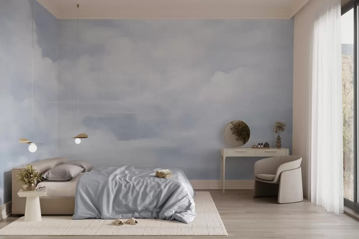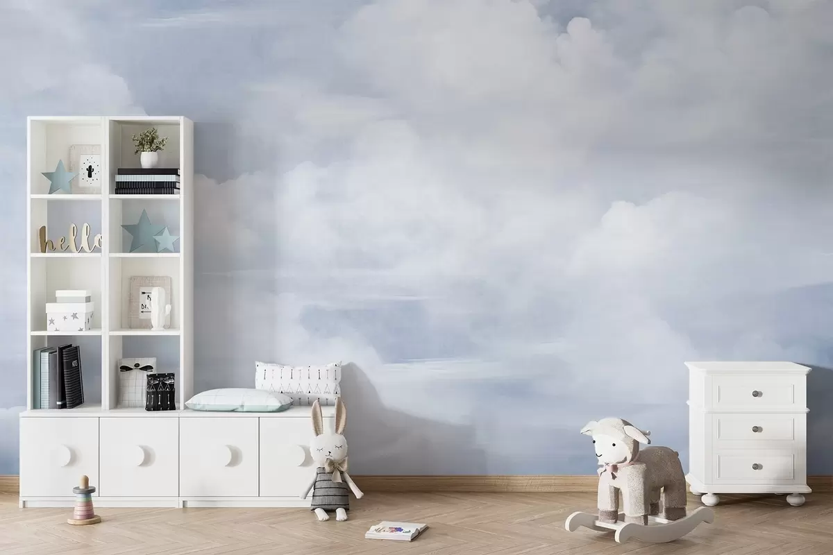 Фототапет Пастелно текстурирано небе, изпълнено с бели облаци, с мека и минималистична естетика Nr w09589