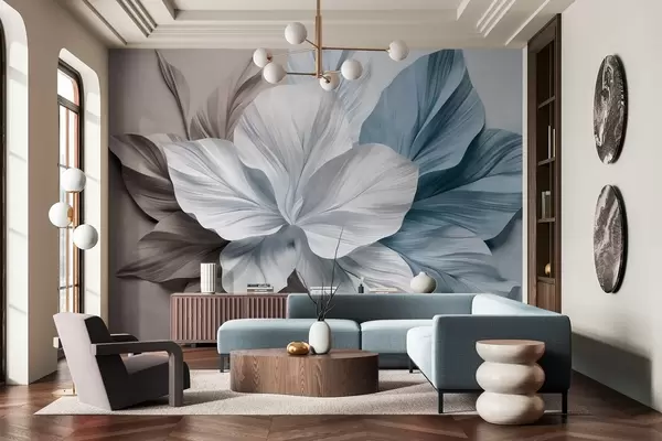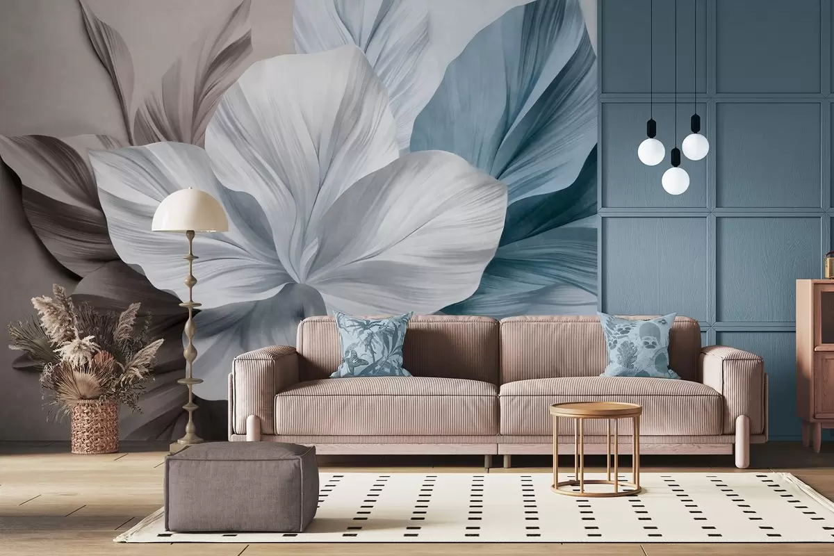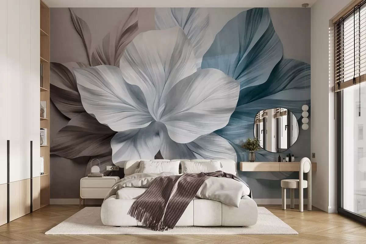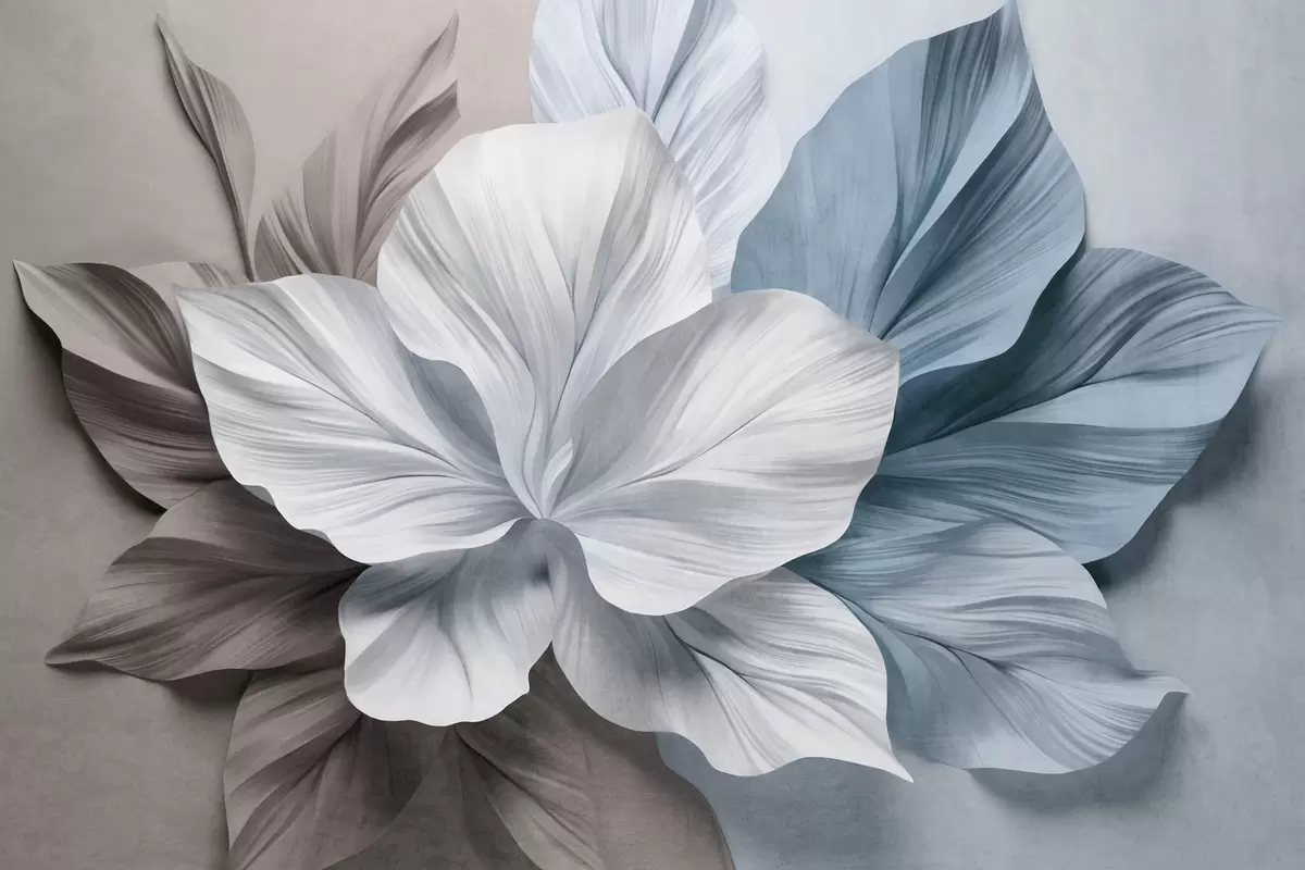 Фототапет Абстрактно многолистно цвете с текстурирани листа в кафяви и сини нюанси, мек фон Nr w09604v1
