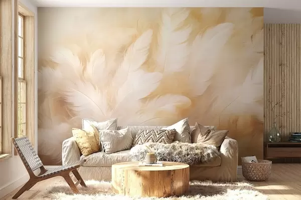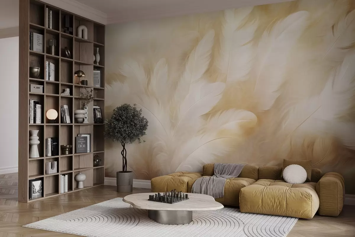 Фототапет Бели и жълти пера с мека текстура Nr w09606