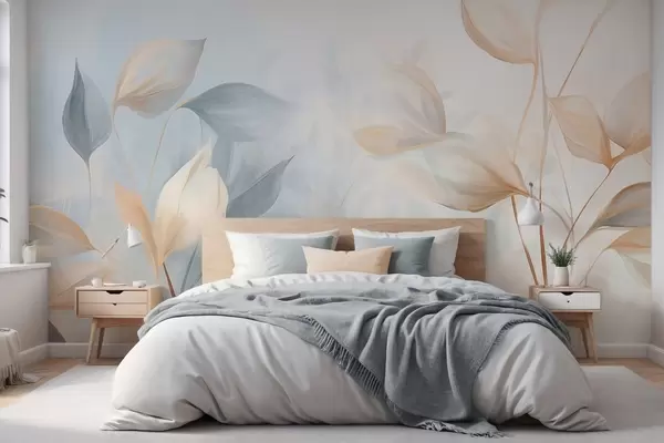 Фототапет Меки, нежни, прозрачни листа в приглушени нюанси на бежово, прасковено и бледо синьо, текстурирано пастелно изкуство Nr w09607