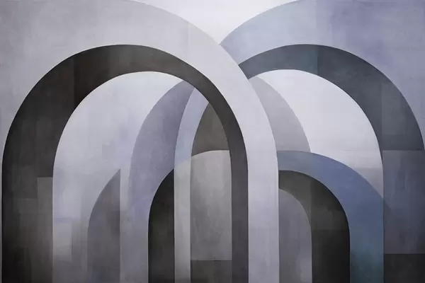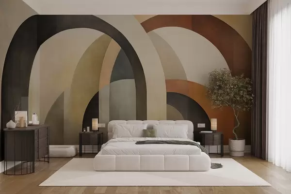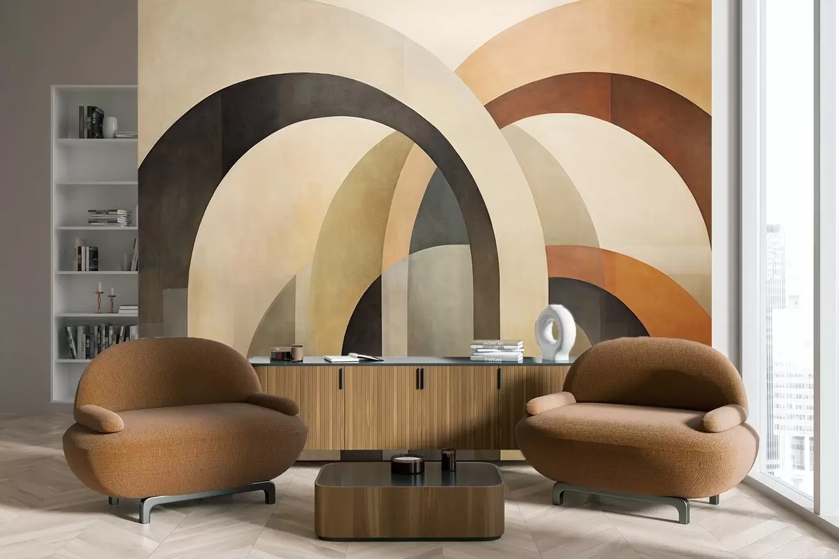 Фототапет Абстрактни текстурирани геометрични арки в земни тонове на бежово, кафяво и сиво, многослоен модерен архитектурен дизайн Nr w09611