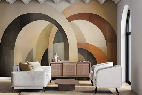Фототапет Абстрактни текстурирани геометрични арки в земни тонове на бежово, кафяво и сиво, многослоен модерен архитектурен дизайн Nr w09611